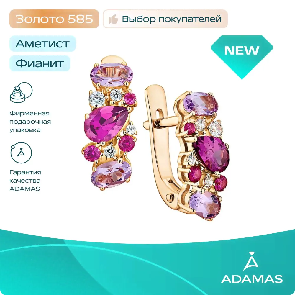 Слишком долго искали Рукоделие, мы изучили достаточно много продуктов и остановились на Золотые серьги 585 пробы Адамас с аметистом с английским замком женские, детские, ювелирное украшение, подарок.